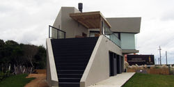 The great challenge of this project was to fit the building into a triangular shaped plot, with the ocean views restricted by the coastal road and the sand dunes. These limitations became advantages at the moment that conventional shapes were put aside and the house was conceived as a boat in the ocean, from which is possible to enjoy the views.